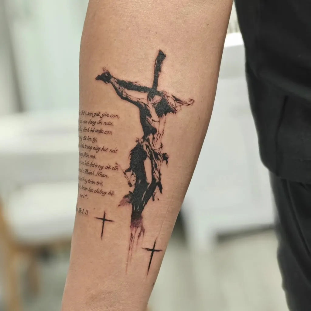 - Blackwork/solid: Bold, high-contrast crosses with strong longevity.