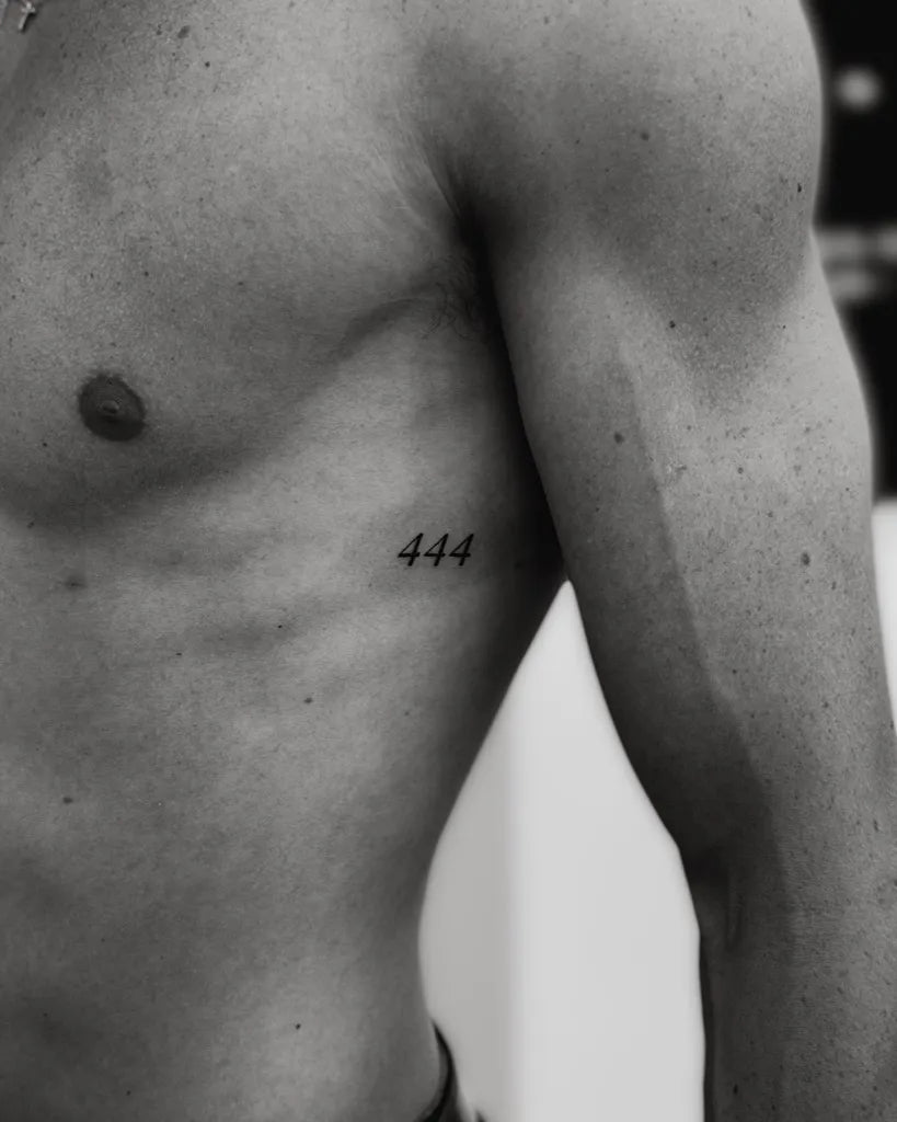 Tiny Minimalist 444 on Men Torso Tattoo by @sweetpeaaesthetics