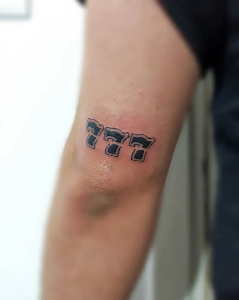 - Fingers or behind the ear: Discreet 777 tattoo with simple linework.