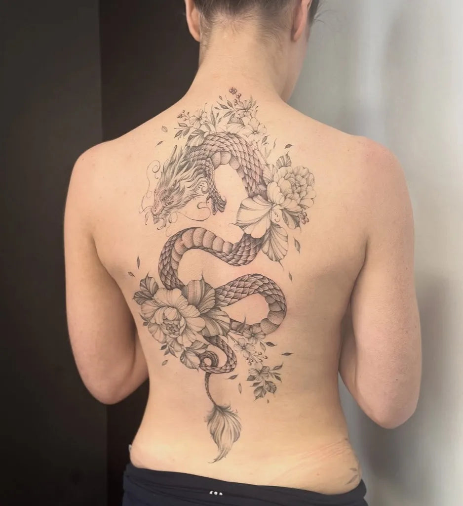 - Plan flow with anatomy: Use the spine as a center axis; let wings, florals, or dragons arc with the shoulder blades and lats.