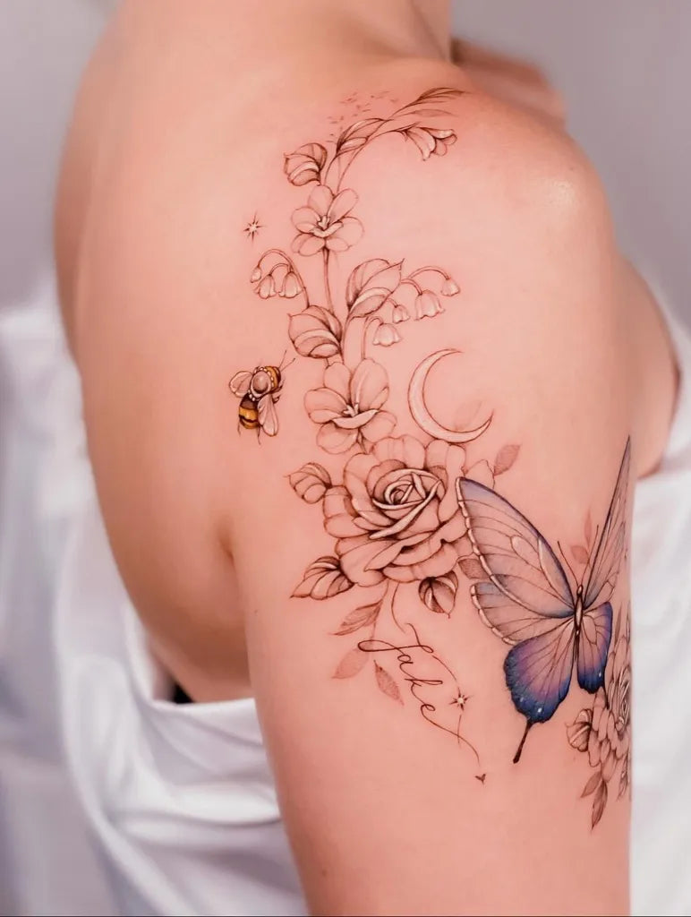- Shoulder or upper arm: Great for honeycomb patterns and floral surrounds.