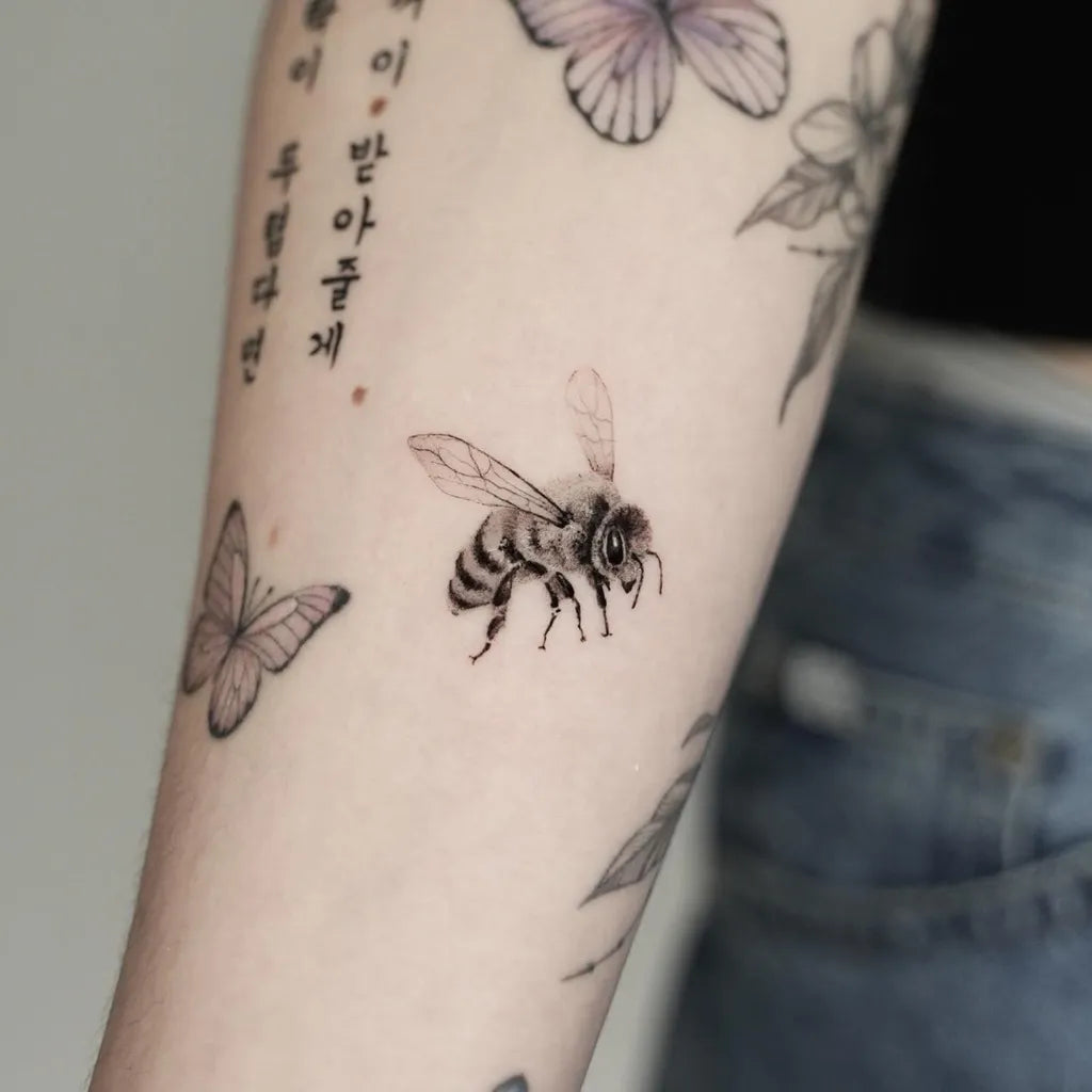 - Fine-line/minimal: Elegant silhouettes or micro bees for wrists, ankles, or behind the ear.