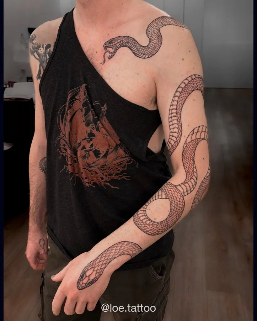Big Blackwork Snake on Men Arm Tattoo by @loe.tattoo