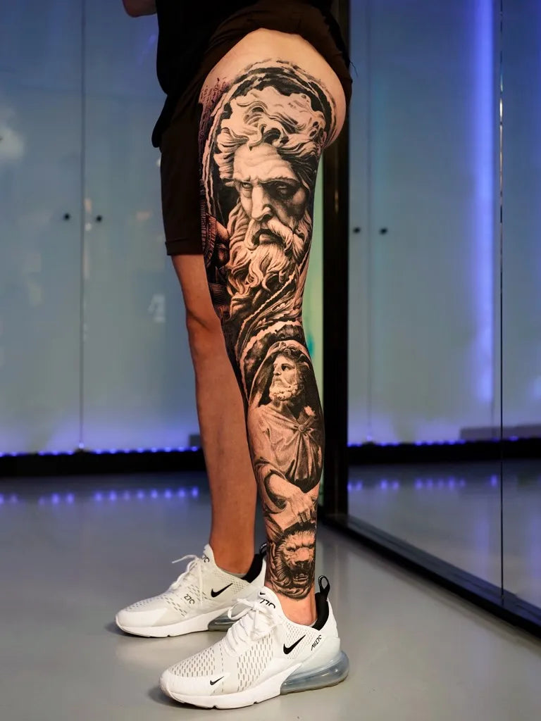 Big Blackwork Zeus on Men Thigh Tattoo by @pascalavendano