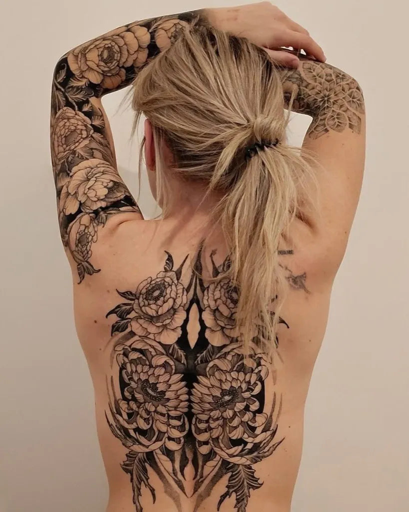 Big Floral Peony Wings on Women Back Tattoo by @tattooassist