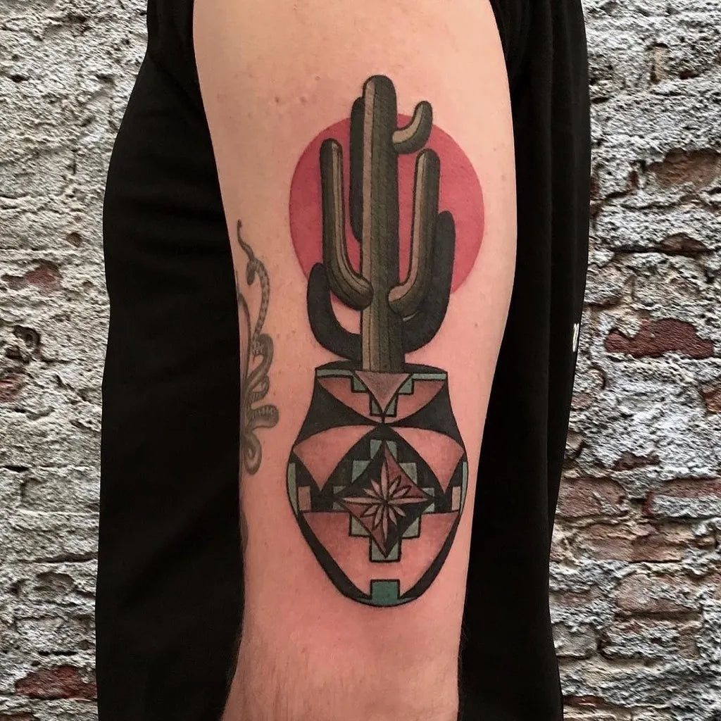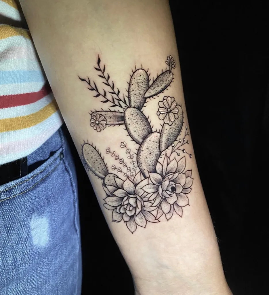 • Desert scene: Combine your cactus tattoo with a sun, dunes, or mountains for narrative depth.