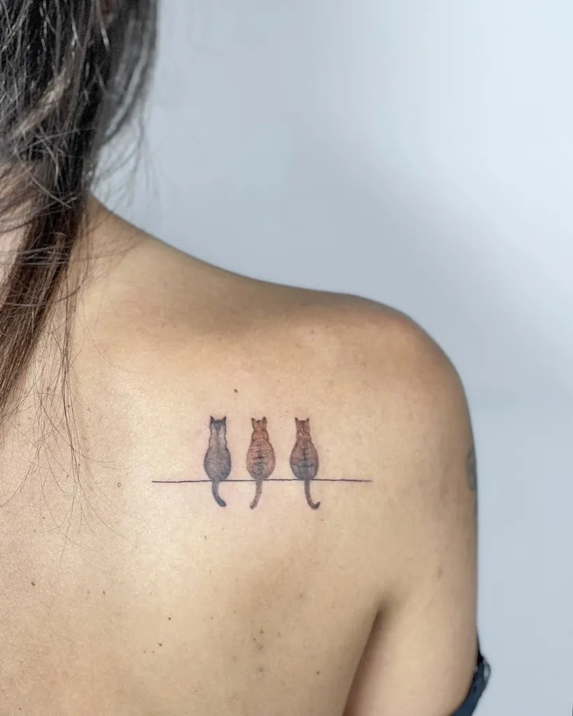 - Minimalist linework: A single-line silhouette, curled tail, or tiny sleeping cat for subtle elegance.