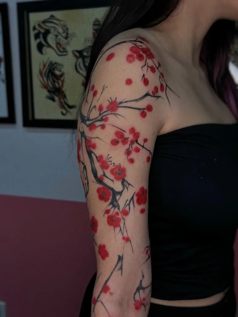 Big Japanese Cherry Blossom Women Arm Tattoo by @nannon.anon