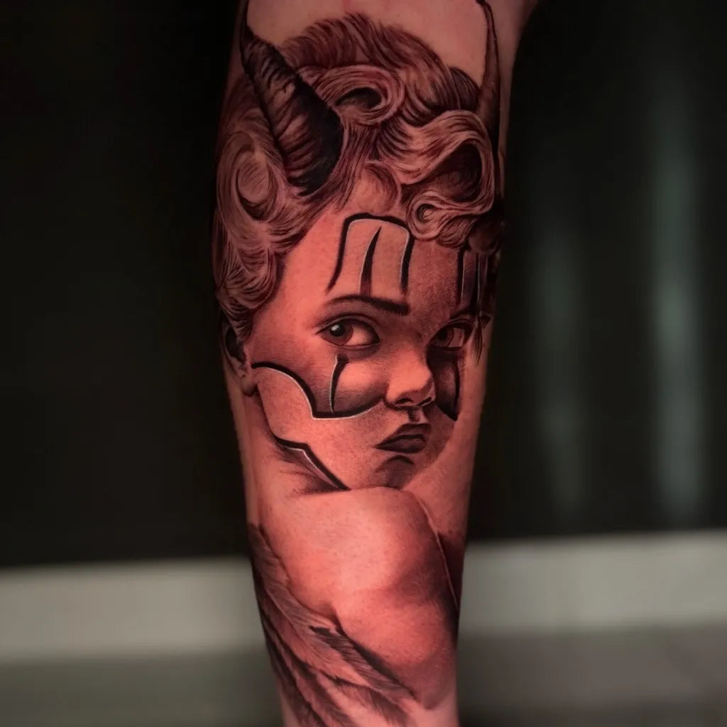 Big Chicano Crying Cherub Tattoo on Men Arm by @milanocityink