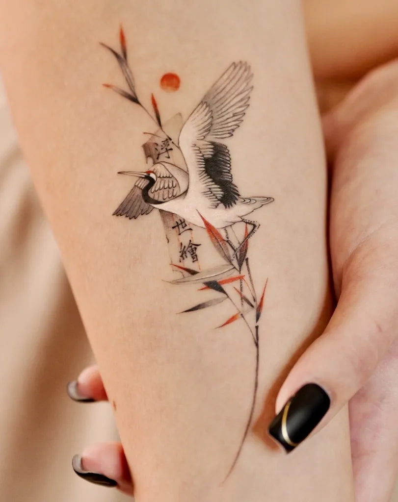 - Traditional Chinese/Japanese hybrid (Irezumi influence): Bold outlines, dynamic negative space, and flowing backgrounds of wind bars, clouds, or waves.