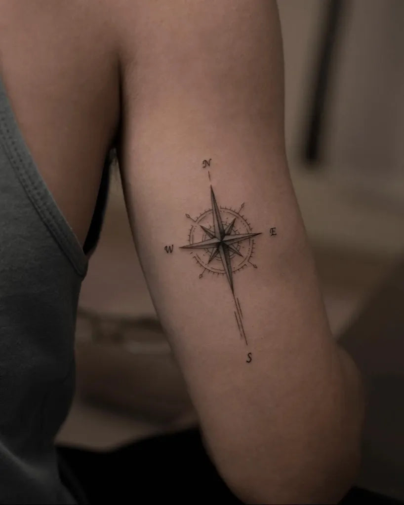 - A compass tattoo symbolizes direction, guidance, protection, resilience, and a spirit of adventure.