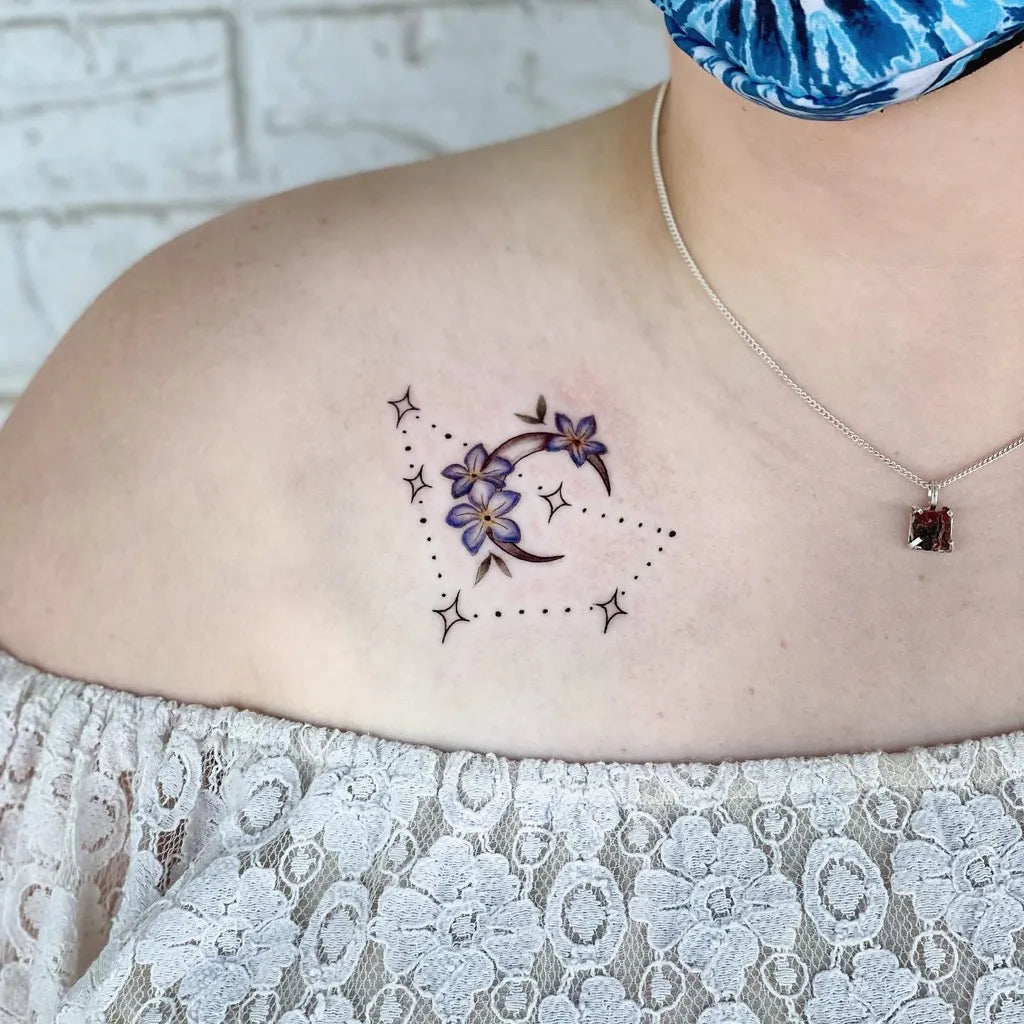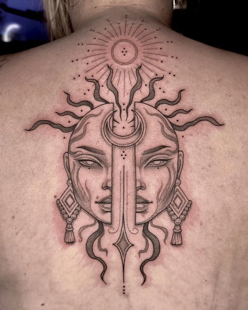 • Shoulder blade or spine: Room for star trails, phases, or a sun–moon balance motif.