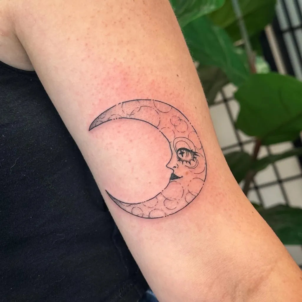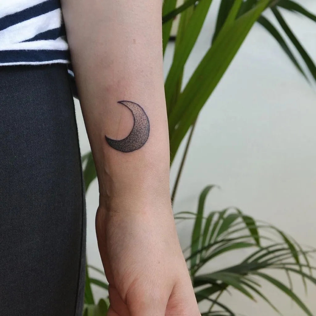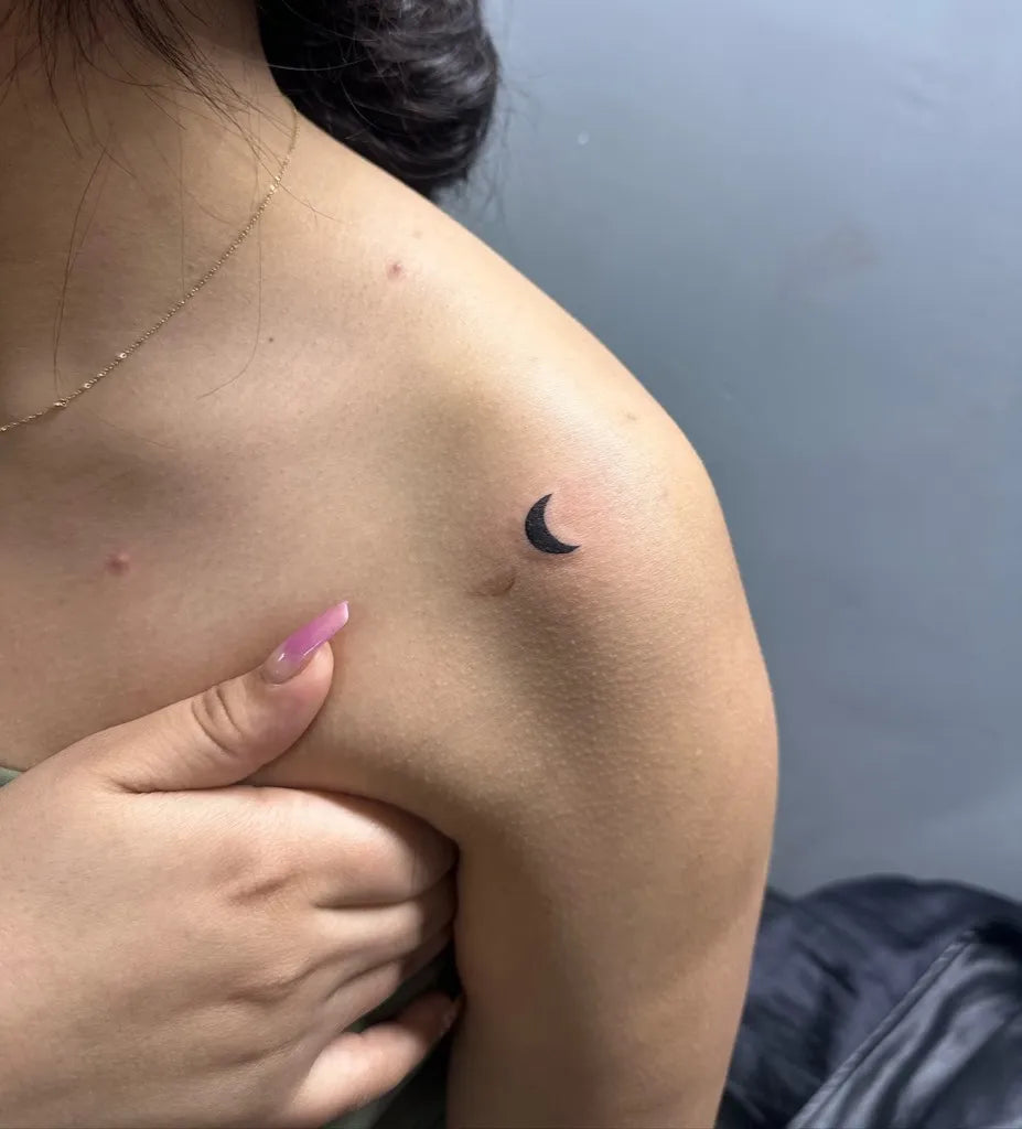 • Prioritize silhouette: Keep the arc crisp and thickness consistent so your crescent moon tattoo reads clearly from any distance.