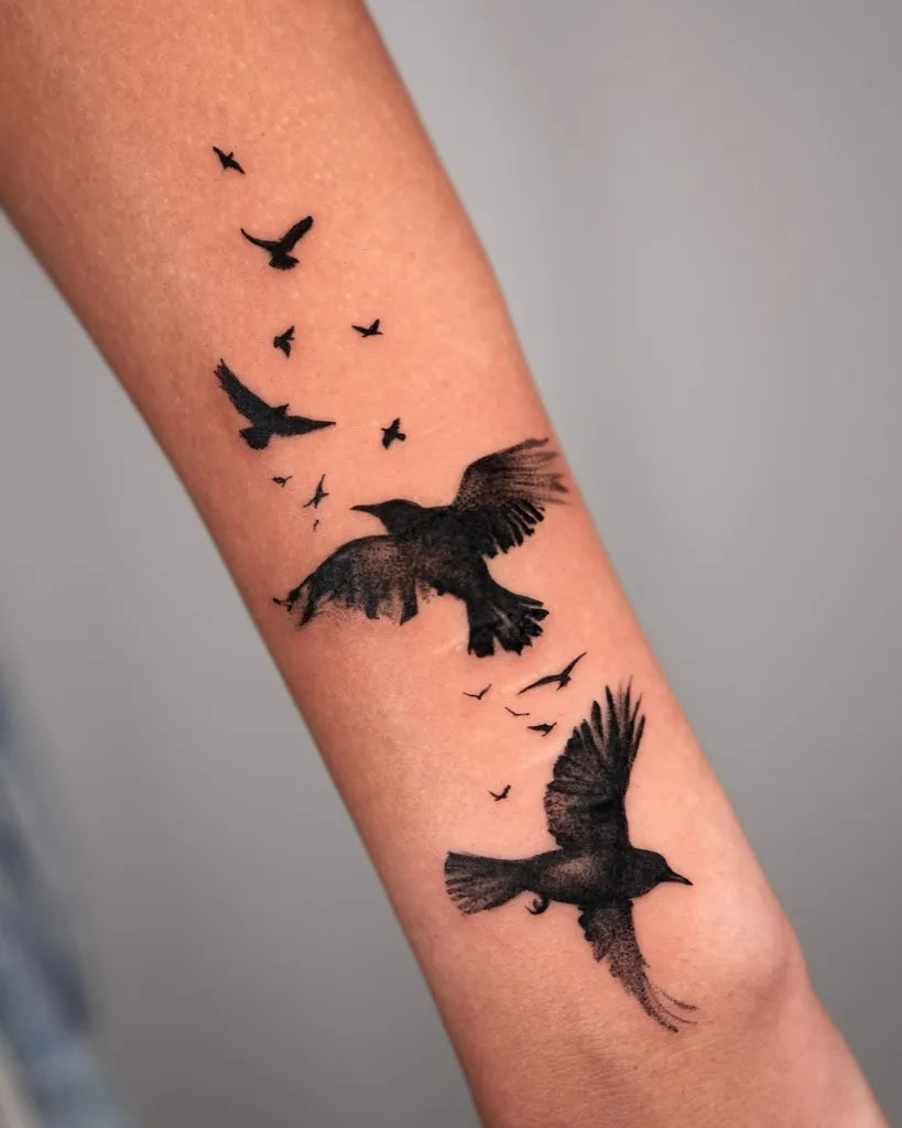 • Wrist, ankle, or behind the ear: Discreet crow tattoo silhouettes.