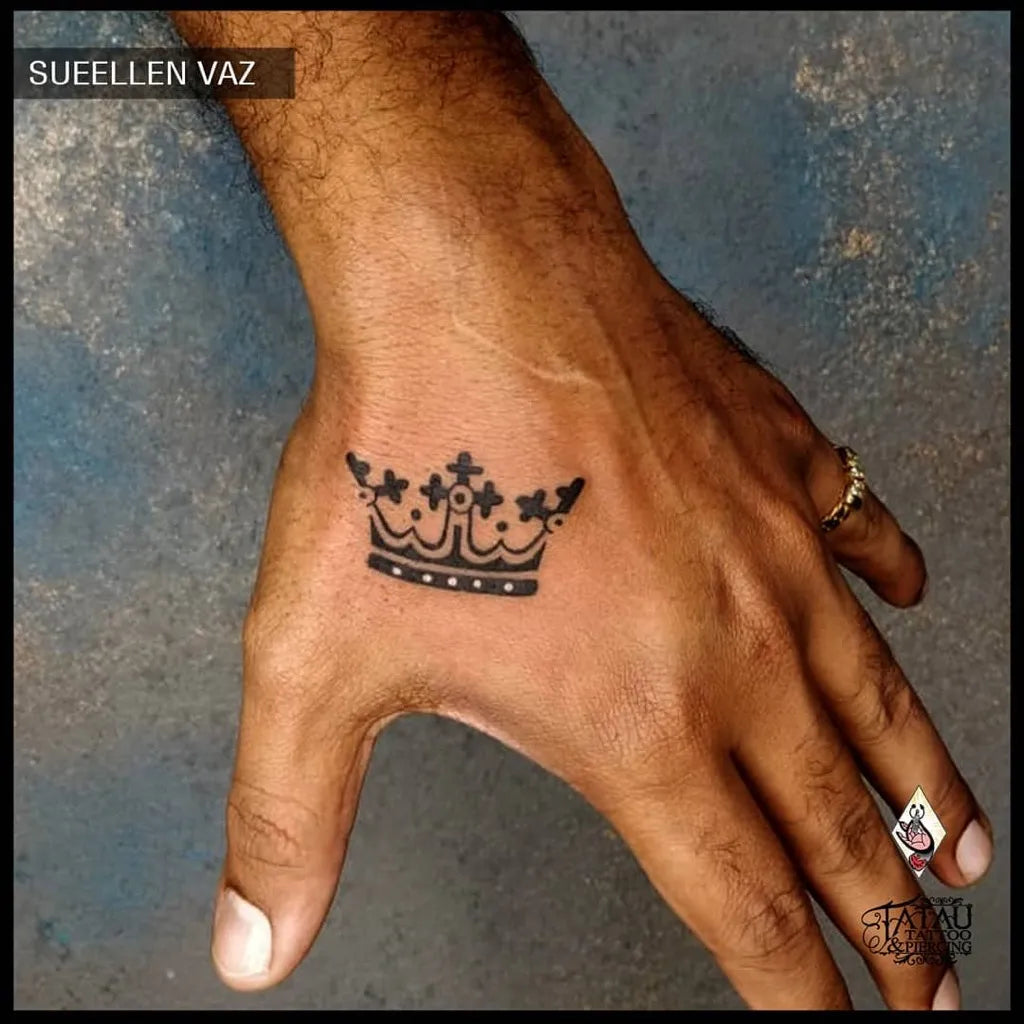 Small Blackwork Crown Tattoo on Men Hand by @tatautattoomumbai