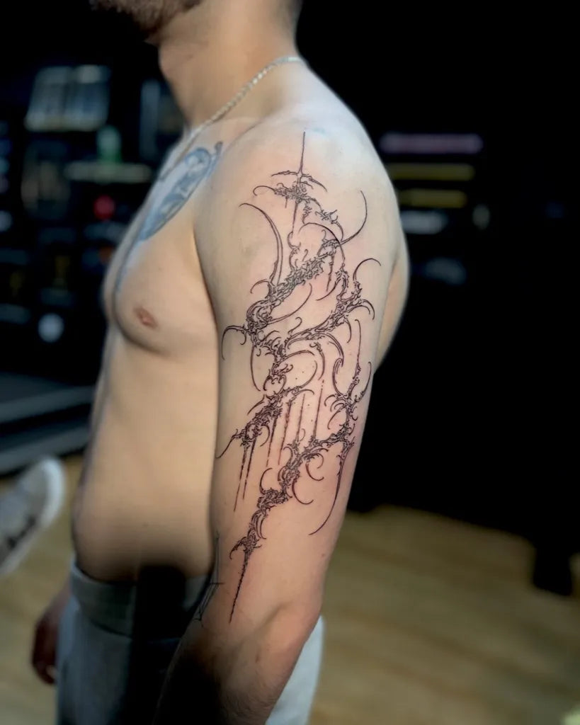 Big Cyber Sigilism Thorns on Men Arm Tattoo by @mateosalinas__
