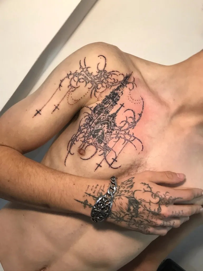 Big Cyber Sigilism Thorns on Men Chest Tattoo by @ali_serpentsink