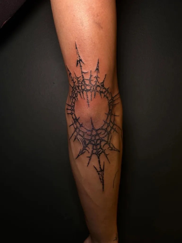 Medium Cyber Sigilism Sigil with Demonic Spikes on Women Thigh Tattoo by @tattuberk