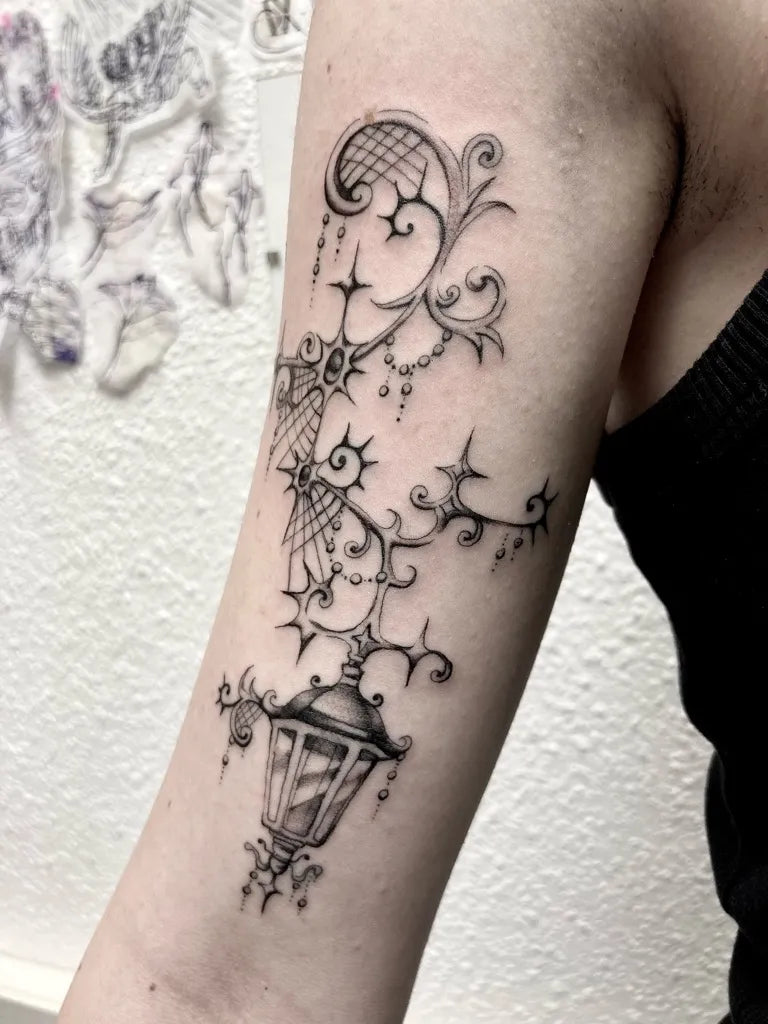 Medium Lantern Cyber Sigilism Lace on Women Arm Tattoo by @giuliafrancesca_