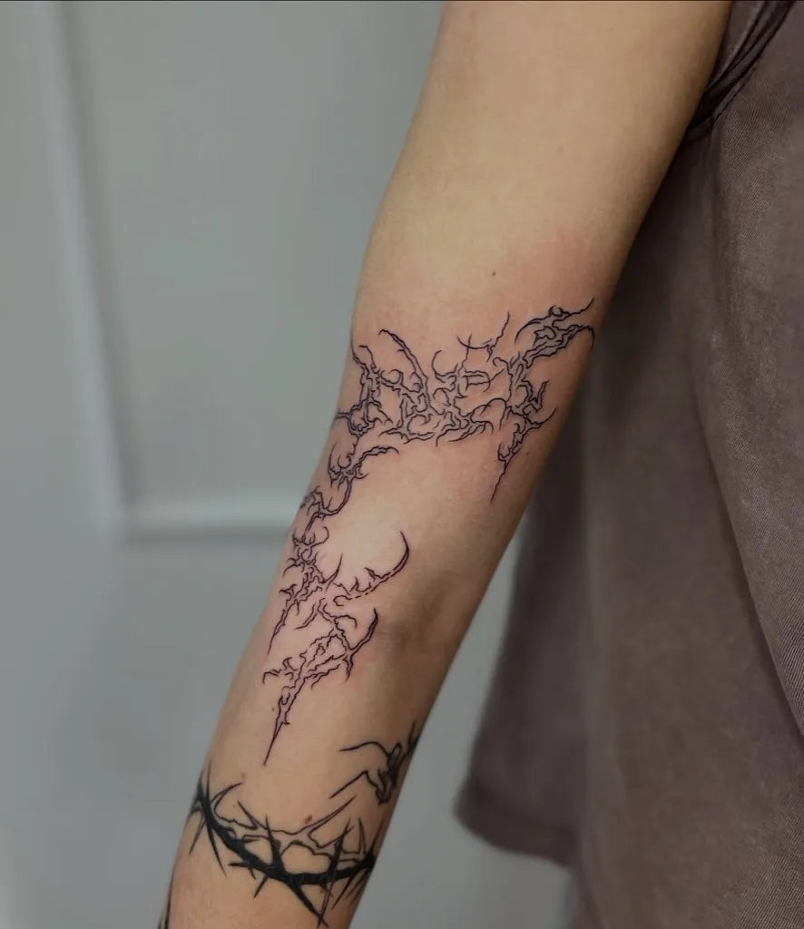 Medium Cyber Sigilism Thorn Branches on Men Arm Tattoo by @littleshopofink