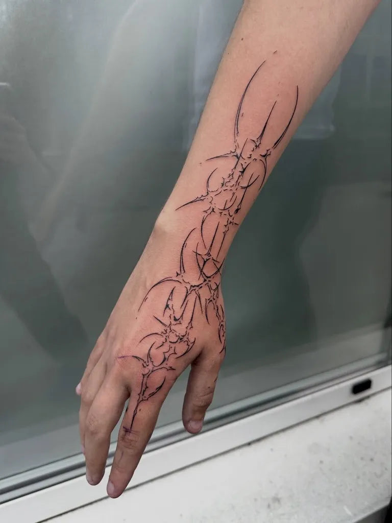 Small Cyber Sigilism Thorns on Women Arm Tattoo by @viaxtattoo