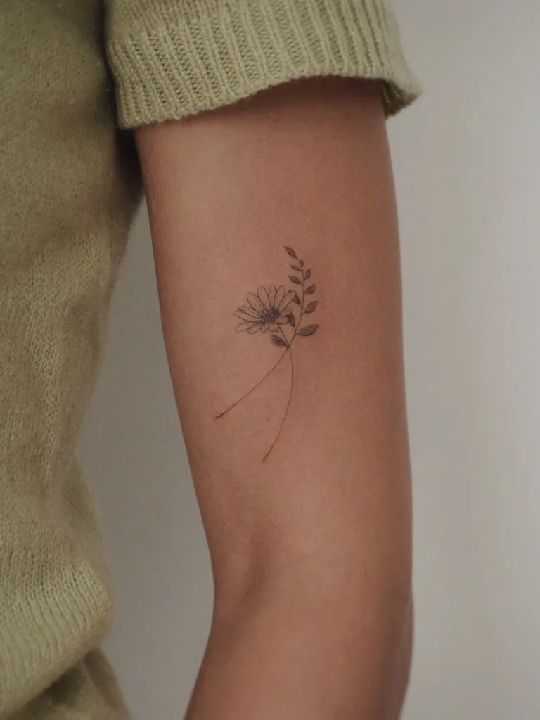 Small Fine Line Daisy Flowers Tattoo on Women Arm by @black.peony.ink