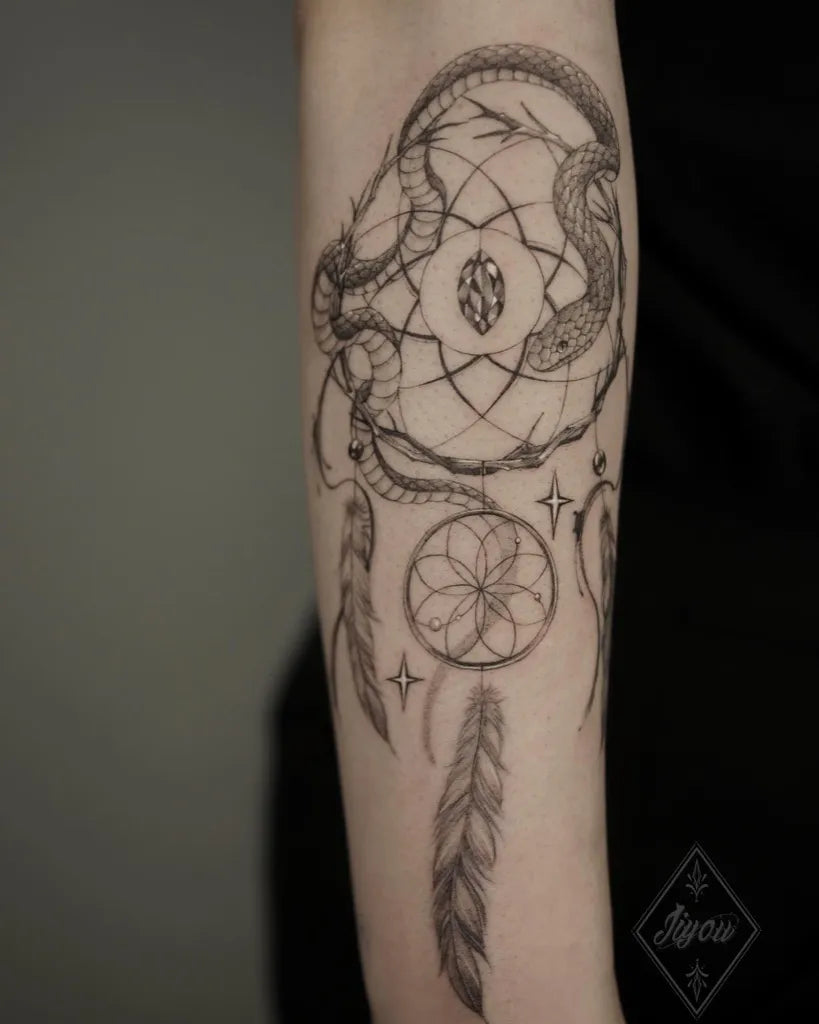 Popular dream catcher tattoo elements and symbolism