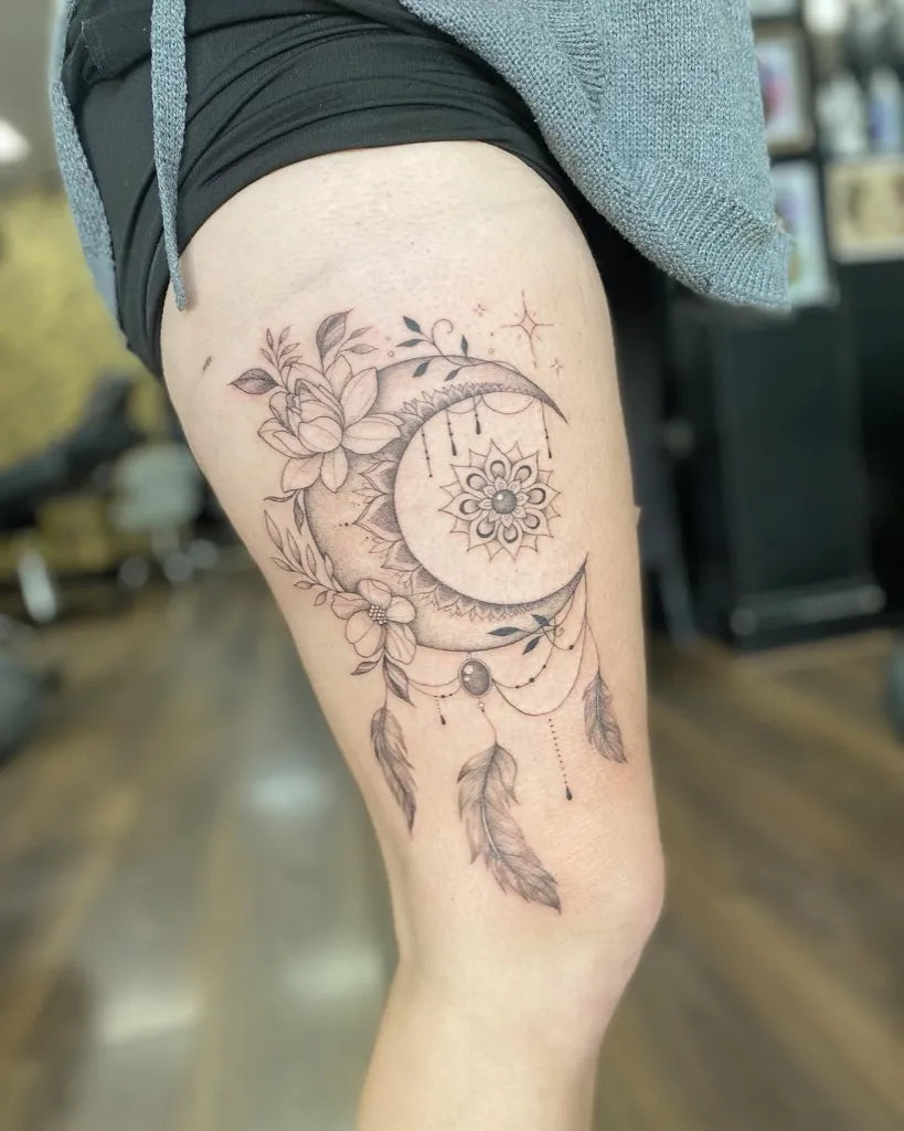 - Shoulder blade or back: Room for larger dream catcher tattoo compositions with moons, florals, or animals.