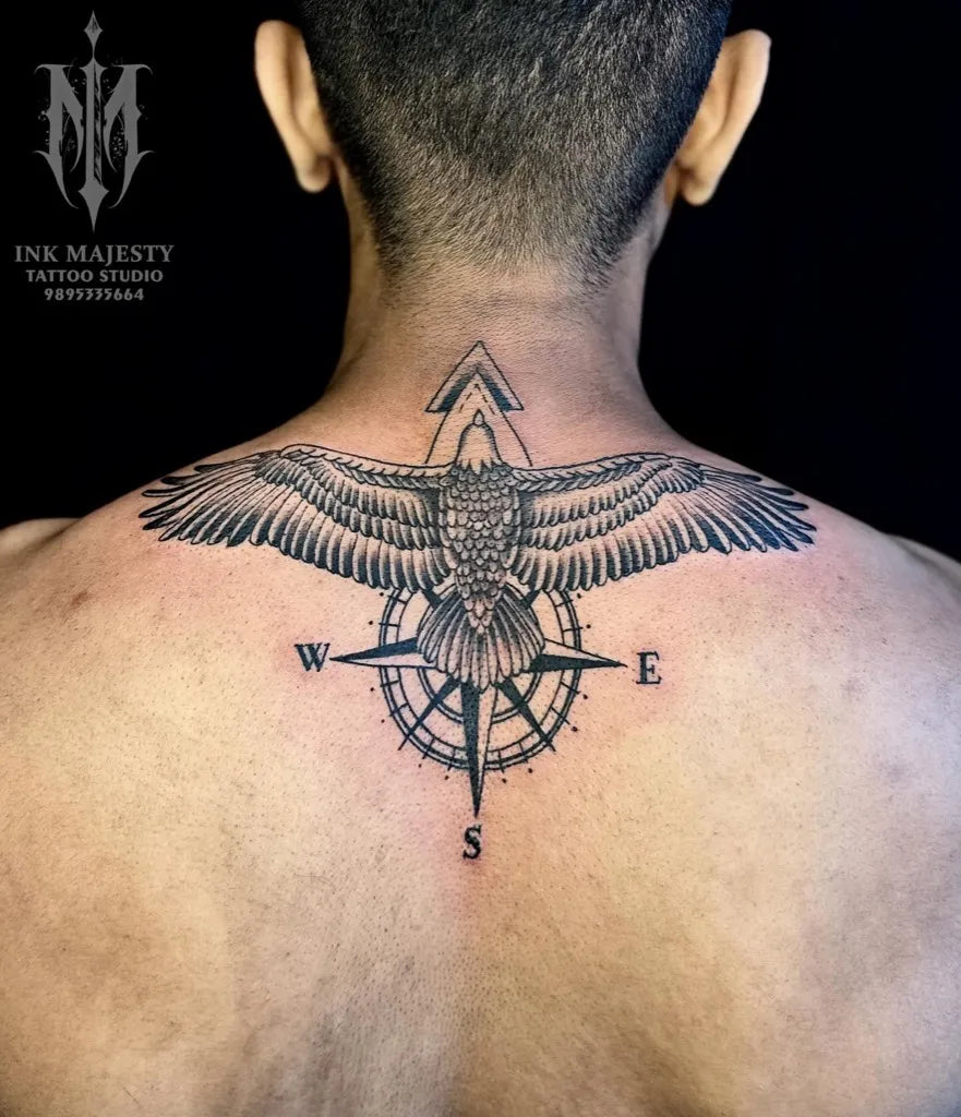 • Chest or back: Large wingspreads and dramatic, center-focused designs.