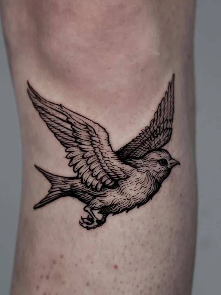 • Forearm or calf: Dynamic flight scenes or perched profiles.