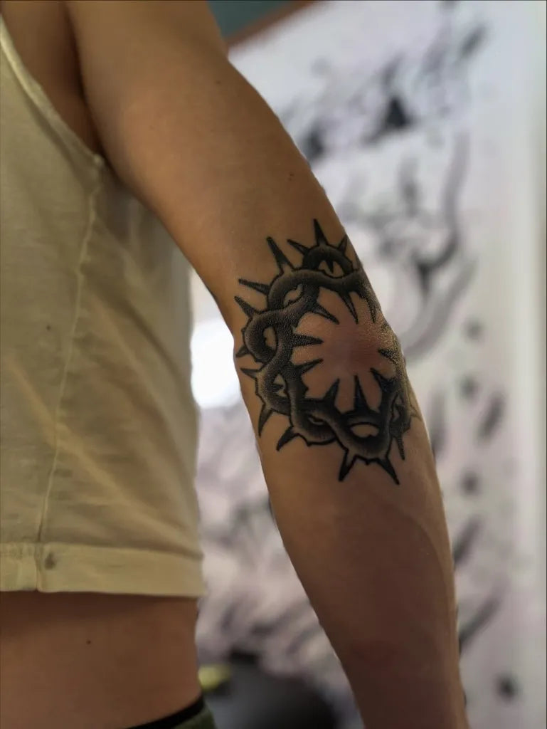 • Symmetry and flow: Mirror or complement designs on both elbows for balance, or extend threads into the triceps and forearm for a cohesive sleeve.