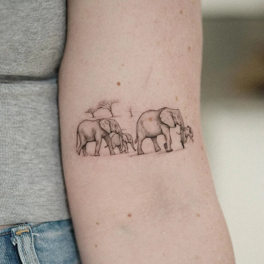 - Wrist, ankle, or behind the ear: Discreet elephant tattoo silhouettes with elegant lines.