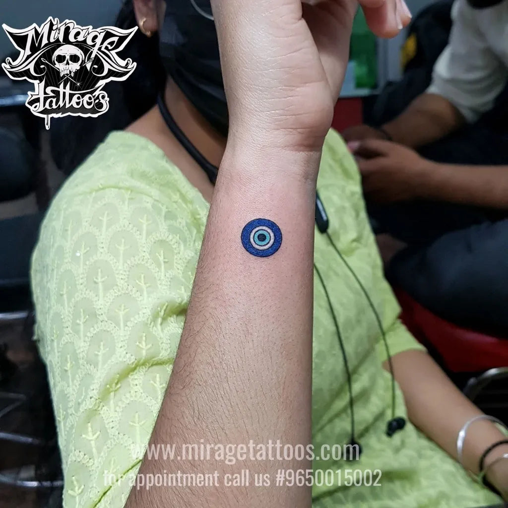 Tiny Minimalist Evil Eye on Women Wrist Tattoo by @kaosinkarnate
