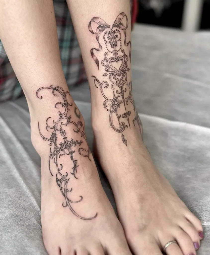Medium Cyber Sigilism Vine Heart Tattoo on Women Foot by @buffbabei.nk