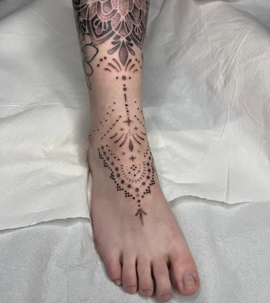 Medium Fine Line Mandala Tattoo on Women Foot by @stefxink