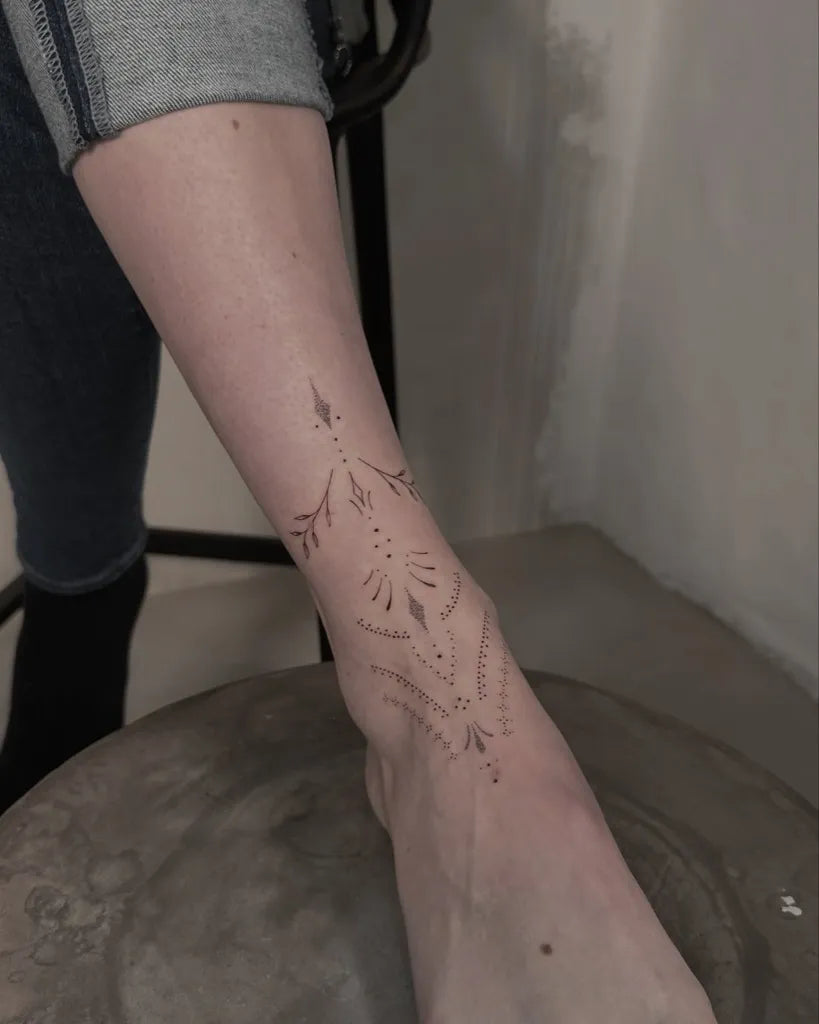 Small Fine Line Mandala Vines Tattoo on Women Foot by @dennis.vierdrei