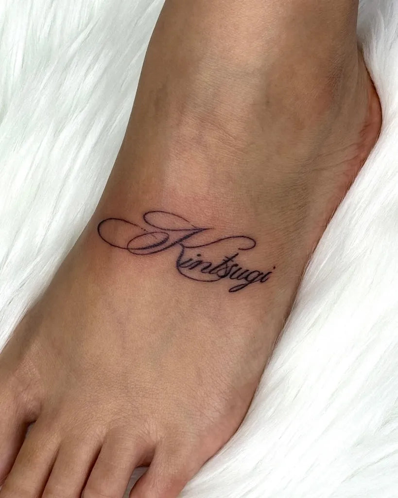 Small Script Word Tattoo on Women Foot by @inkbytheresa