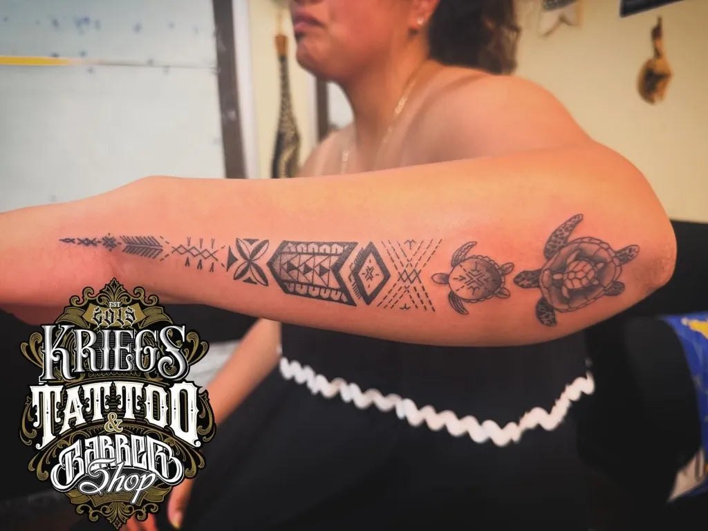 Small Polynesian Turtles on Women Forearm Tattoo by @kriegs_christopherr