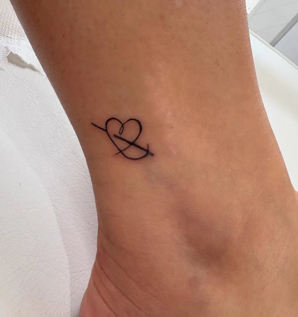 Tiny Minimalist Heart and Arrow on Women Ankle Tattoo by @beauty_and_the_inked