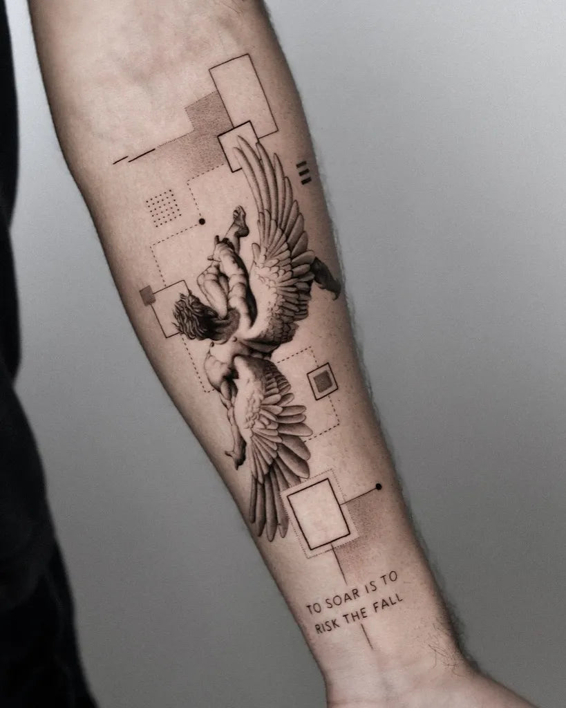 • Ambition and risk: Reaching for greatness, even at personal cost. An Icarus tattoo can honor bold leaps and daring dreams.