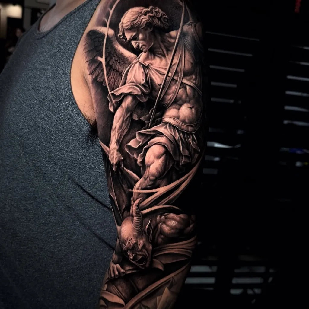 - Upper arm, shoulder, or back: Space for detailed sacred imagery.