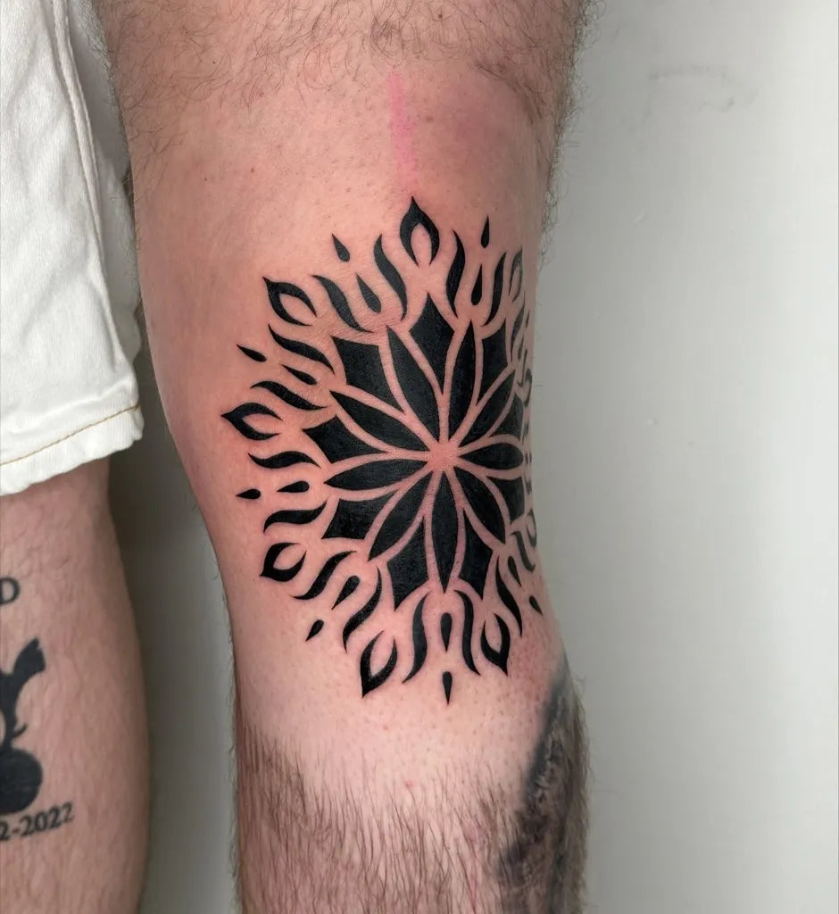 Medium Blackwork Mandala Tattoo on Men Knee by @maxreeder_tattoo