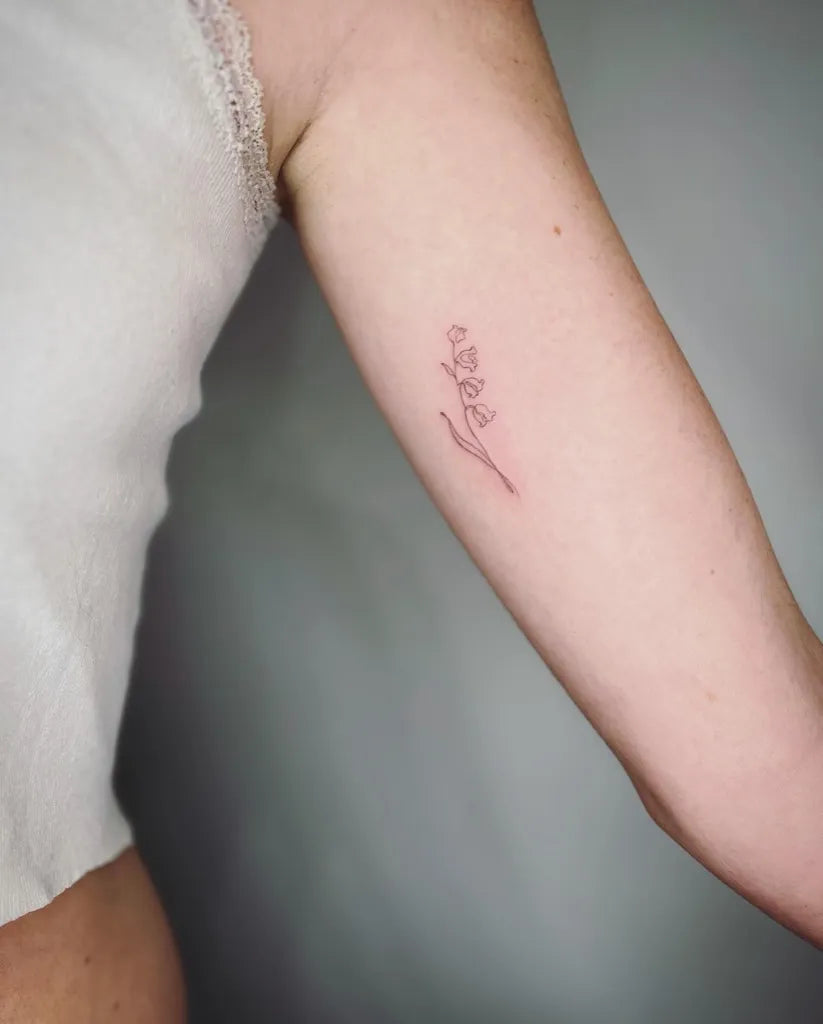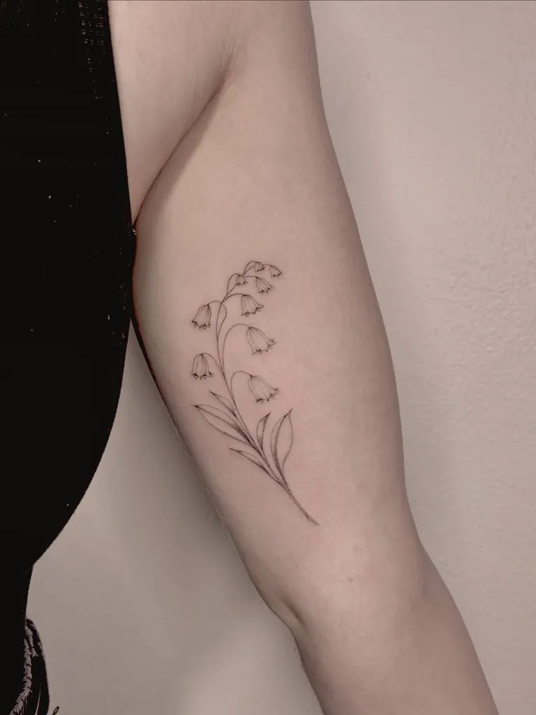 Small FineLine Lily of the Valley Women Arm Tattoo by @uno.tat