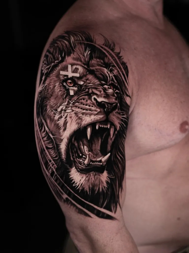 • A lion tattoo symbolizes strength, courage, leadership, loyalty, and protection.