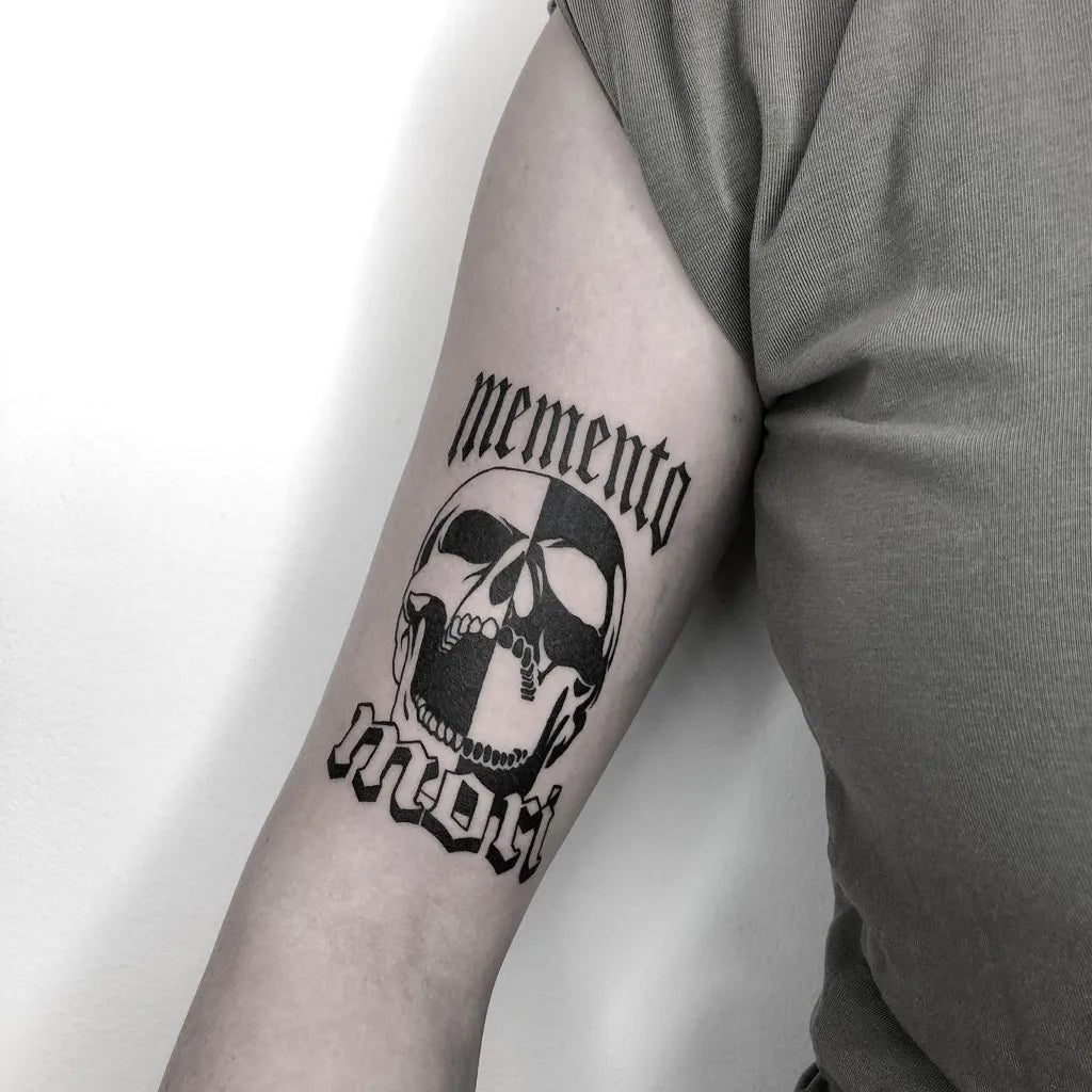 Medium Blackwork Memento Mori Skull on Men Arm Tattoo by @neal_panda