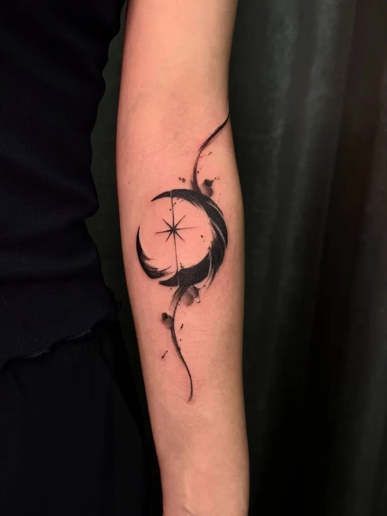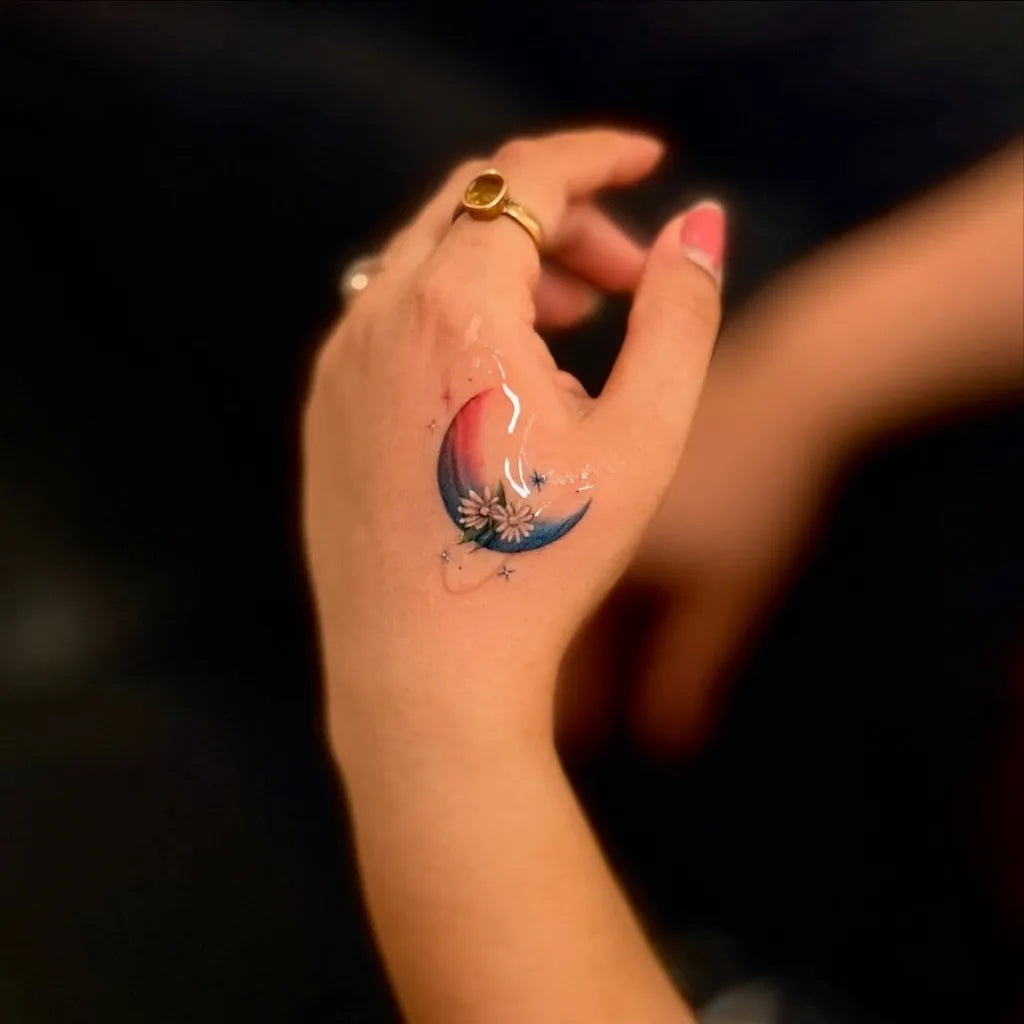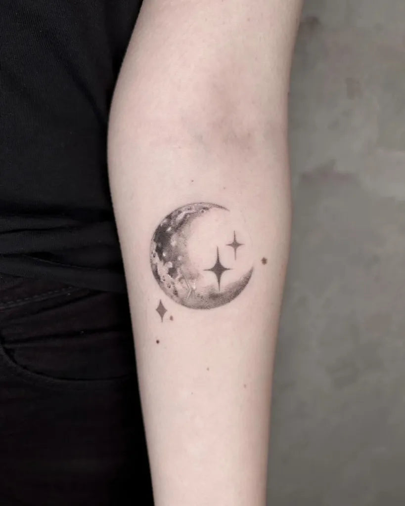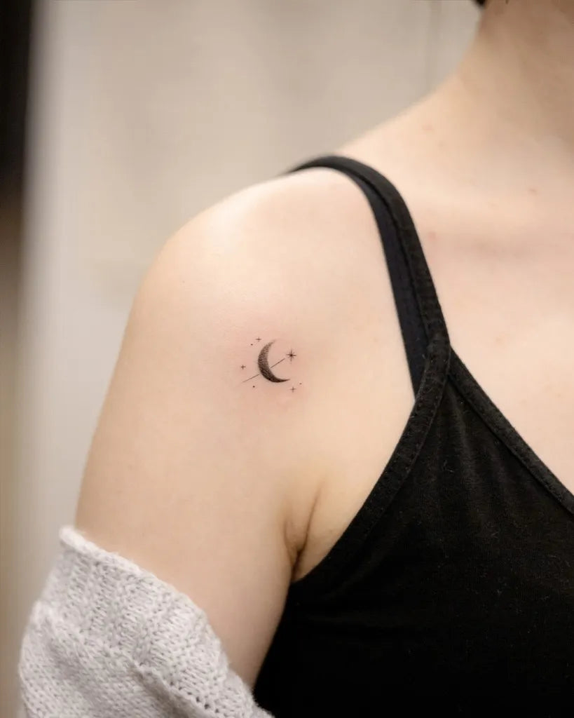 - Minimal/fine-line: Delicate crescent or half-moon, small stars, and clean outlines.