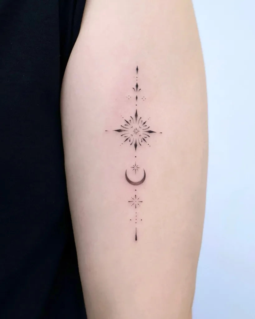 - A moon tattoo symbolizes intuition, cycles, balance, renewal, and mystery.
