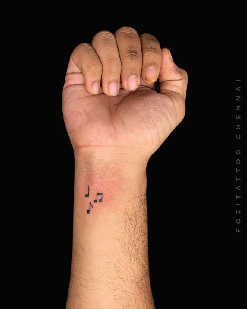 Tiny Fine Line Music Notes Music Tattoo on Men Wrist by @fozitattoo