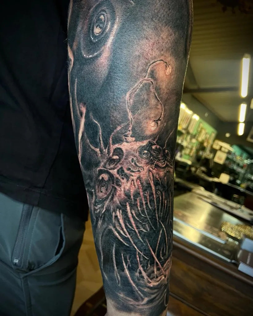 Big Blackwork Octopus Nautical Tattoo on Men Arm by @dannybrowntattoos