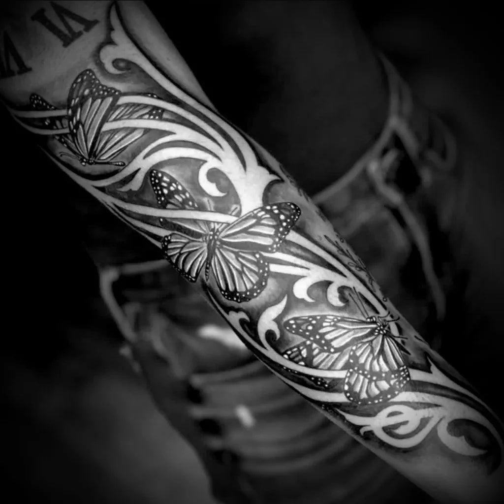 - Session planning: Big negative space tattoo projects often start with linework and mapping, then move to black fills and refined shading.